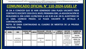 PLAZAS VACANTES PARA CONTRATO DOCENTE 2024.
