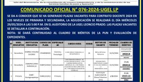 CONVOCATORIA CAS N° 011-2024-UGEL.LP-INTERVENCIONES PEDAGOGICAS.