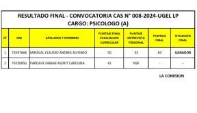CONVOCATORIA CAS N° 010-2024-UGEL LP.