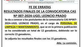 CONVOCATORIA CAS N° 07-2024-UGEL LP.