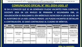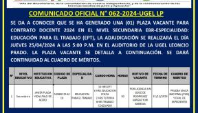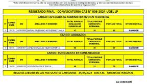 CONVOCATORIA CAS N° 008-2024-UGEL LP.